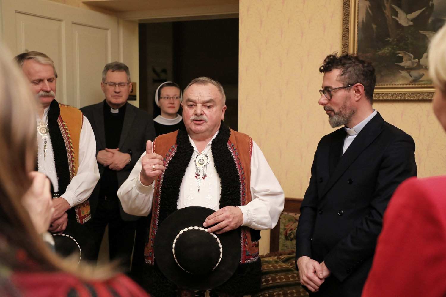 Tegoroczne spotkanie „Choinka w Domu Rodzinnym” ponownie wypełniło salon rodziny Wojtyłów świąteczną atmosferą i duchem góralskiej tradycji. Delegacja z Zakopanego przywiozła piękną, pachnącą choinkę wprost z Doliny Chochołowskiej przekazując ją w geście jedności i pamięci o Ojcu Świętym. W wydarzeniu uczestniczyli jak zawsze przedstawiciele władz Zakopanego i powiatu tatrzańskiego oraz Wadowic - miasta i powiatu - a także delegacja Urzędu Marszałkowskiego Województwa Małopolskiego z panią Iwoną Gibas na czele.