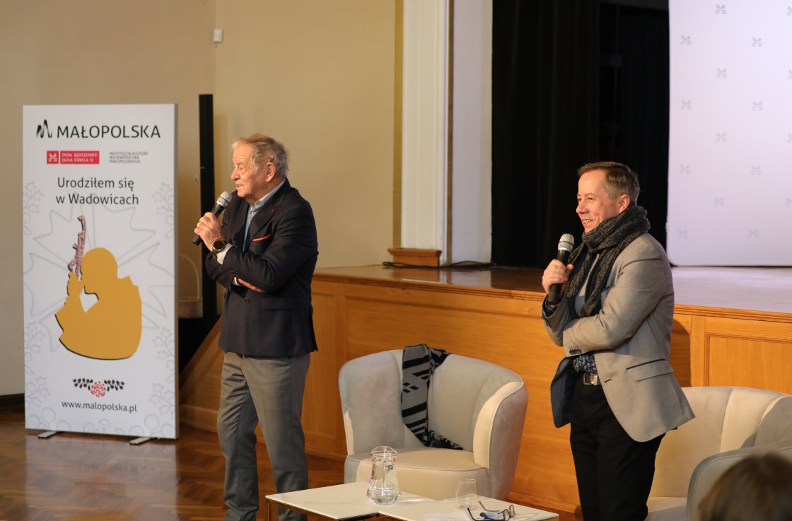 24 listopada 2025 r. o godz. 11:00 w sali teatralnej Domu Katolickiego w Wadowicach odbyło się kolejne spotkanie z cyklu InspiRACJE. Tym razem gościliśmy wyjątkowy duet - Jerzego Fedorowicza (ojca) oraz Jerzego Fedorowicza (syna). Było to poruszające i pełne energii spotkanie dwóch pokoleń twórców oraz działaczy kultury, którzy opowiadali o swoim doświadczeniu, misji teatru i tym, jak wartości przenosi się z ojca na syna.