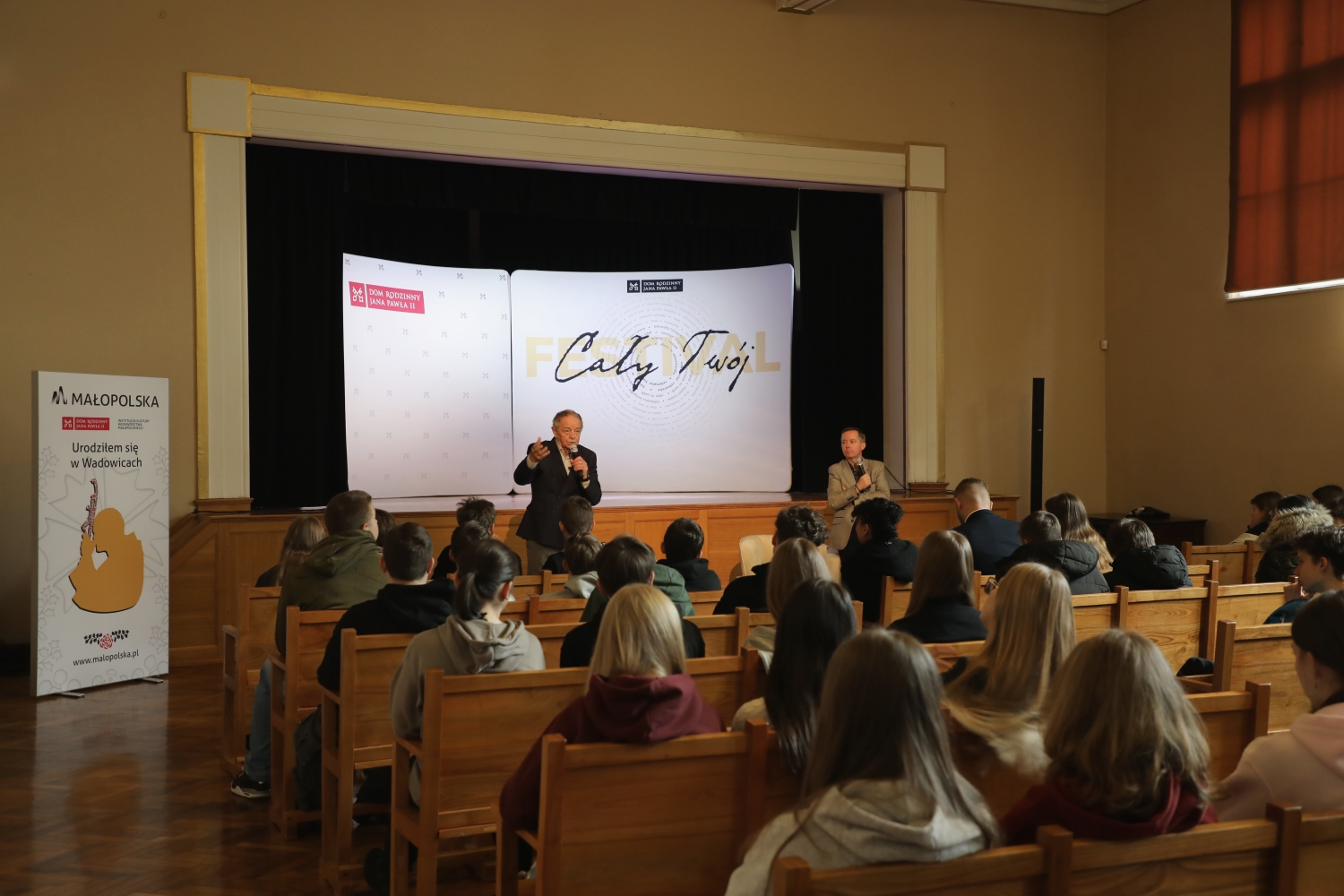 Jednym z najbardziej poruszających momentów rozmowy był wątek dotyczący relacji ojca i syna. Obaj goście podkreślali, jak ważną rolę odegrała w ich życiu rodzinna tradycja pracy dla innych i wrażliwość społeczna. Wspominając swoje wspólne działania, zwrócili uwagę m.in. na coroczne kwestowanie na Cmentarzu Rakowickim - gest, który od lat symbolicznie łączy ich pokolenia. Opowiadali o tym, jak takie inicjatywy uczą solidarności, pamięci o przodkach i odpowiedzialności za wspólne dobro. Szczerość i otwartość, z jaką mówili o rodzinnych wartościach, poruszyła zarówno młodzież, jak i dorosłych uczestników spotkania.